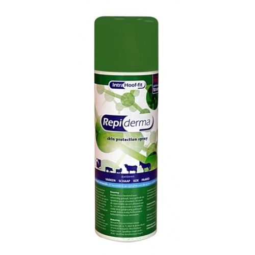 Спрей Репідерма производства компании Intracare - эффективная защита для кожи животных не содержит антибиотики.Фермы КРС, специалисты по расчистке копыт и ветеринары теперь могут работать без использования антибиотиков. Линия продуктов Hoof-fit производства компании Intracare сделала большой прорыв в этой сфере. Недавно этот продукт получил официальный статус ветеринарных препаратов в Нидерландах. Hoof-fit Спрей является первым продуктом в мире, что не содержит антибиотики и который можно официально использовать в борьбе против Пальцевого Дерматита (Мортелларо). Репідерма содержит липкие вещества, которые обеспечивают долгий контакт с кожей. Дополнительно Репідерма содержит активные ингредиенты, защищающие кожу от внешних факторов. Спрей Репідерма можно использовать для КРС, лошадей, овец и свиней.
